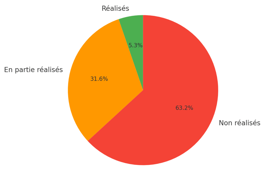 - 12 non réalisés (63,1 %)